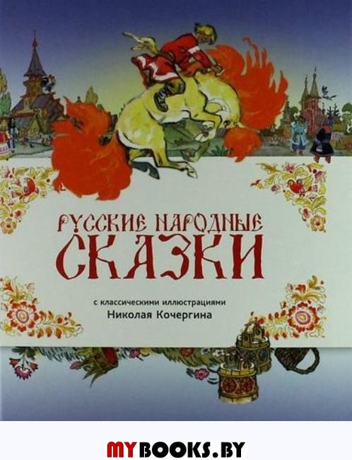 Лучшие сказки из народной сокровищницы! .В сказочный мир, по которому можно путешествовать на обычной печке или быстром сером волке, где ночью по полям расхаживает ослепительная Жар-птица, а в избушке на курьих ножках в лесной глуши живёт самая настоящая Баба-яга, хочется возвращаться снова и снова в любом возрасте. А вы уже придумали, какие заветные желания загадаете волшебной щуке? .Для маленьких читателей свои любимые русские народные сказки пересказали М. Горький, А. Толстой и М. Булатов. А восхитительные иллюстрации созданы классиком жанра - художником Н. Кочергиным.