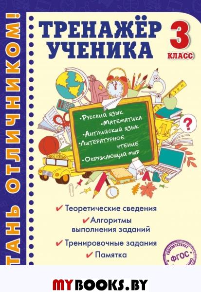 Тренажёр удобного формата, подготовленный в соответствии с требованиями ФГОС для начальной школы, предназначен для учащихся 3 класса и учителей, включает в себя основные разделы школьной программы. Каждая тема состоит из блока теоретических сведений, памятки, образца, в котором наглядно показан алгоритм освоения учебного навыка, и блока тренировочных заданий для закрепления. Пособие поможет младшему школьнику научиться грамотно писать слова с непроизносимыми согласными в корне и с шипящими на конце, не делать ошибки в приставках и суффиксах, правильно выполнять морфологический, морфемный и синтаксический разборы, решать примеры и задачи на деление и умножение, пересказывать текст по-английски, работать с планом местности, анализировать сказки и басни. Усвоив общий алгоритм выполнения задания, ученик сможет применять полученные знания и в других учебных дисциплинах. Тренажёр может быть использован в качестве дополнительного материала на уроках русского языка, математики, литературного чтения, английского языка и окружающего мира, а также во время домашних занятий.