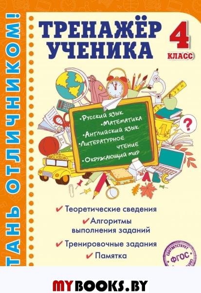 Тренажёр удобного формата, подготовленный в соответствии с требованиями ФГОС для начальной школы, предназначен для учащихся 4 класса и учителей, включает в себя основные разделы школьной программы. Каждая тема состоит из блока теоретических сведений, памятки, образца, в котором наглядно показан алгоритм освоения учебного навыка, и блока тренировочных заданий для закрепления. Пособие поможет младшему школьнику отработать навык правильного написания безударных падежных окончаний имен существительных, прилагательных, глаголов, потренироваться в выполнении арифметических действий с многозначными числами и решении разных типов задач, подготовить краткий или подробный пересказ, проанализировать стихотворение, определить время глагола в английском языке, составить диалог и текст. Усвоив общий алгоритм выполнения задания, ученик сможет применять полученные знания и в других учебных дисциплинах. Тренажёр может быть использован в качестве дополнительного материала на уроках русского языка, математики, литературного чтения, английского языка и окружающего мира, а также во время домашних занятий.