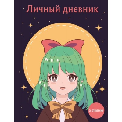 Личный дневник со стикерами. Девочка с бантиком (А5, 48 л.)