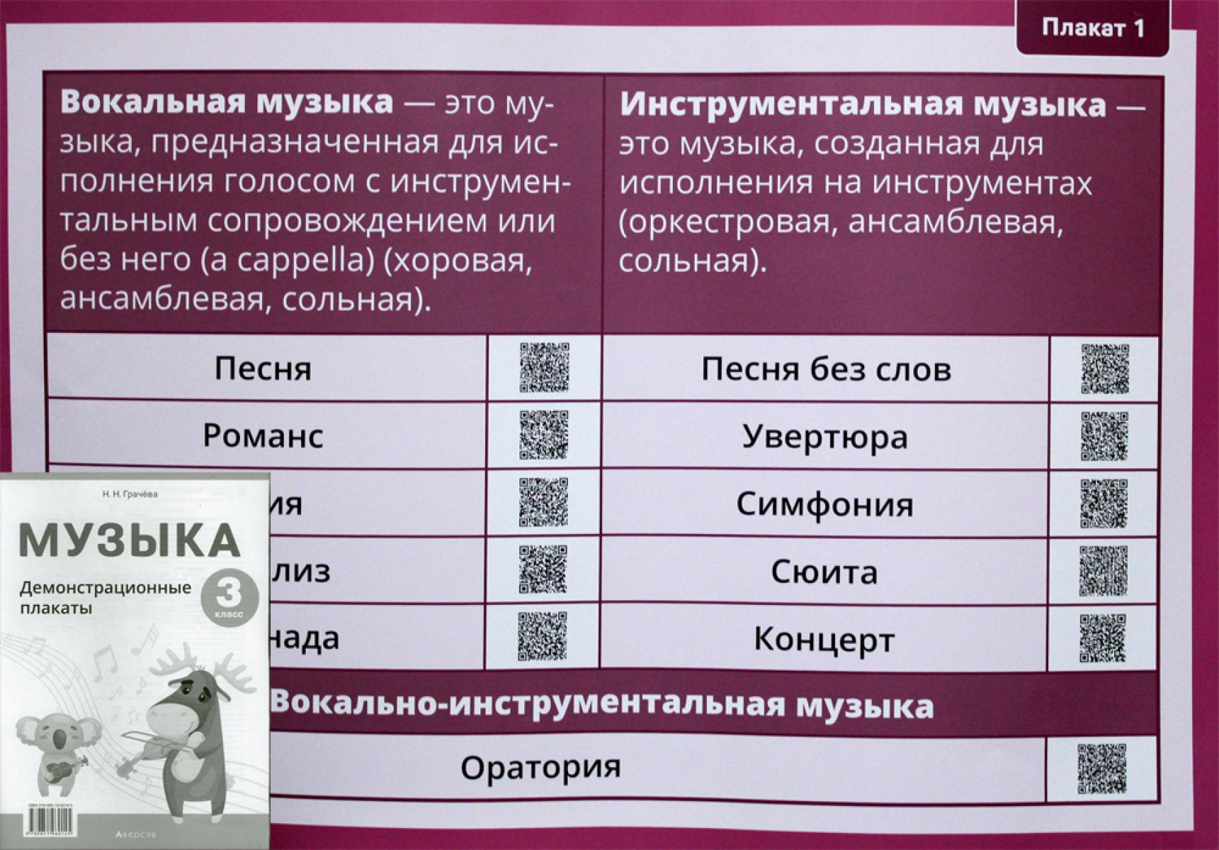 Музыка. 3 кл. Демонстрационные плакаты (12 плакатов на 6 листах Формат А2 + методические рекомендации). Грачева Н.Н.